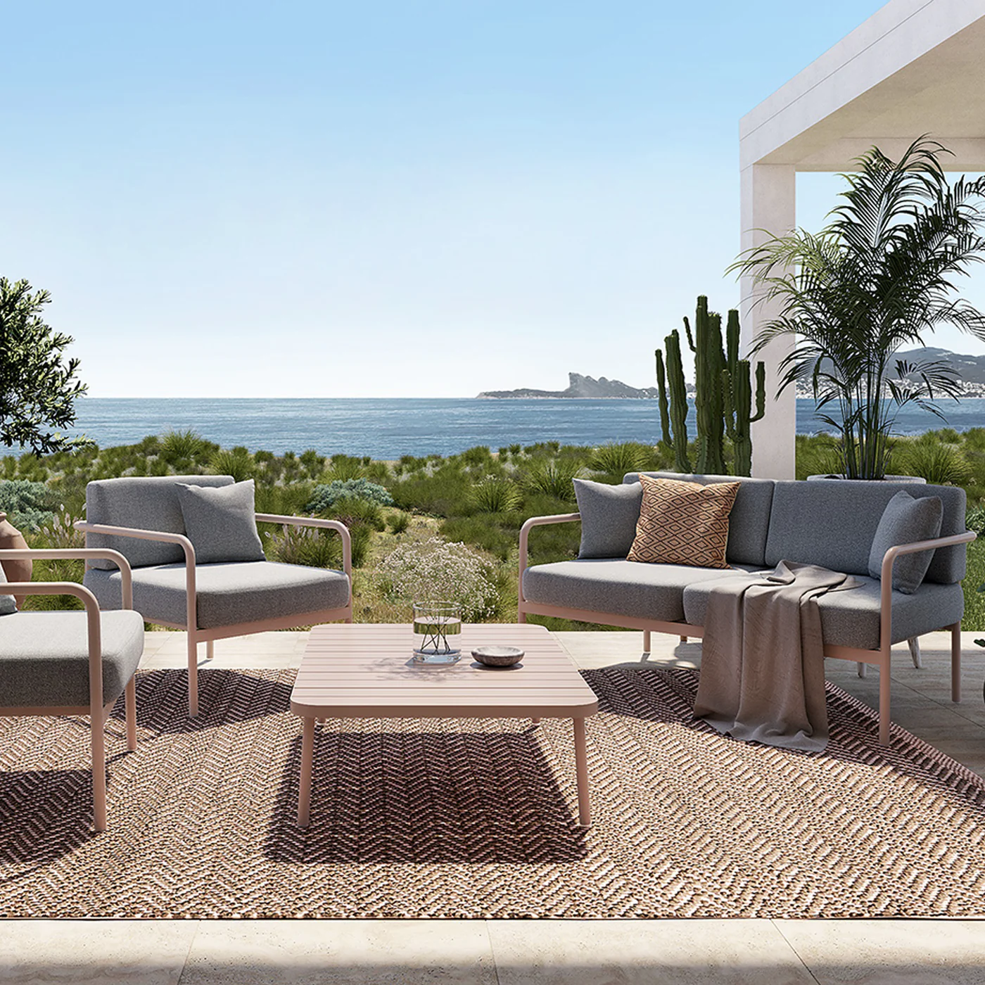 L’espace lounge est devenu le lieu incontournable des terrasses de restaurants, des bars, des bords de piscine ou encore des espaces détente aménagés dans les entreprises ou lors d’événements. Pour vous faciliter la vie, nous vous offrons une solution clef en main, simple et rapide d’installation, sans montage : l’ensemble 4 places Cannes avec table basse. Ses lignes courbes et ses grands coussins parfaitement ajustés confèrent à ce mobilier lounge élégance et style dans un esprit de détente et convivialité. Résistant et durable, léger et simple, le sofa Cannes convient à tous les lieux, petits ou grands espaces, mer ou montagne, à tous les styles. Rien ne lui résiste et il résiste à tout !