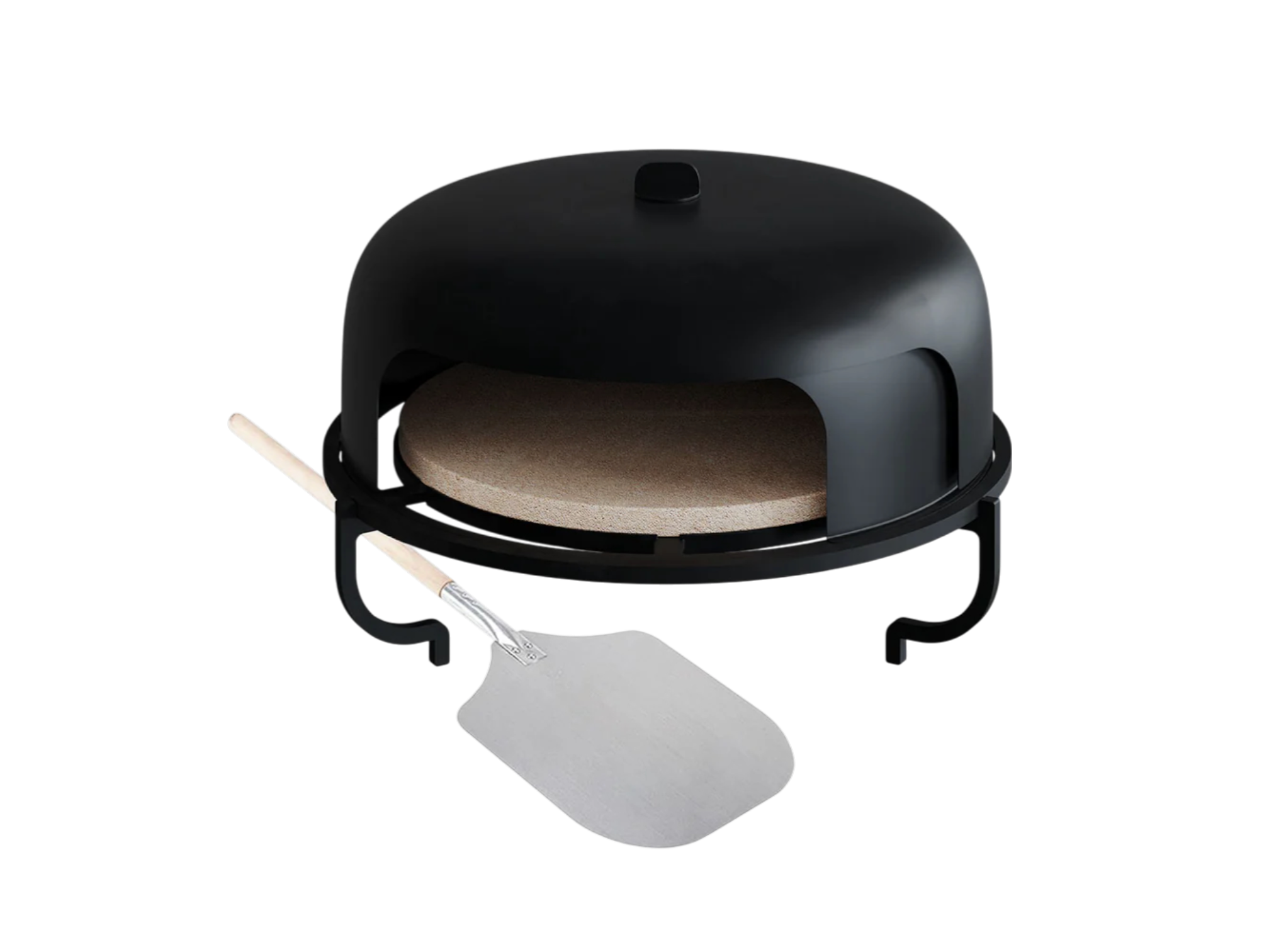S’il y a bien un appareil de cuisson d’extérieur incontournable aujourd’hui, c’est le four à pizza. Grâce à la cuisson au feu de bois naturel, le brasero OFYR devient l’outil idéal pour préparer de délicieuses pizzas. Le four à pizza 85 cm est composé d’une plaque en fonte réversible, d’une pierre à pizza placée sur la plaque et d’une cloche en acier à double paroi, dont la partie extérieure peut pivoter sur la partie intérieure. Une pelle à pizza est également incluse.